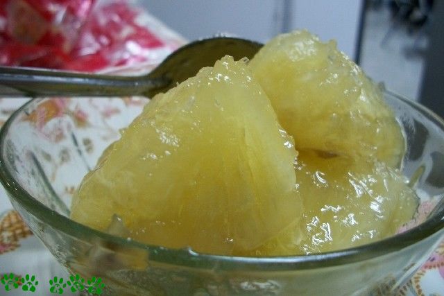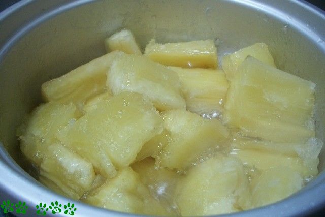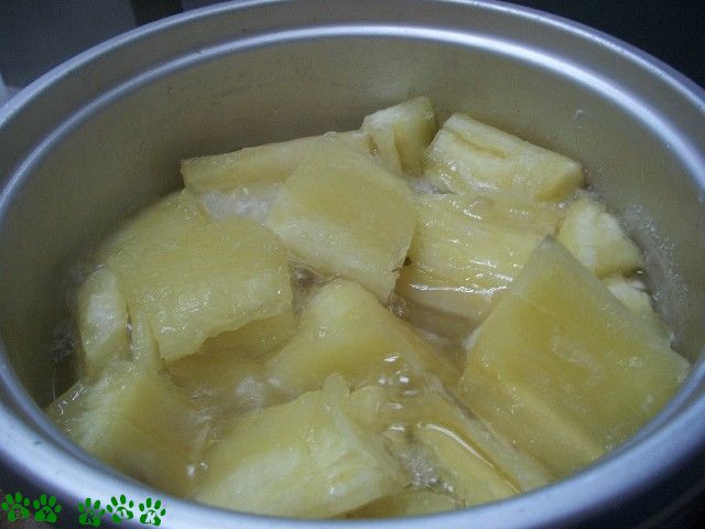 นำมาใส่หม้อนึ่งให้สุก เวลาสุกเนื้อมันจะใส เหลือง