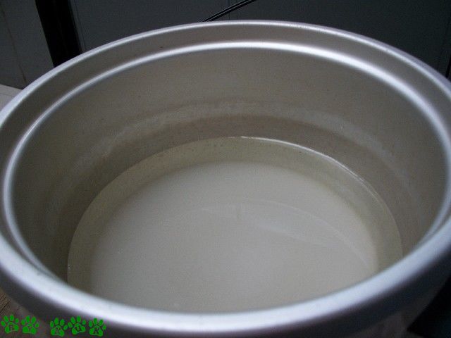 5. ทำน้ำราดกะทิ โดยใส่น้ำกะทิ, แป้งข้าวเจ้าและเกลือลงในหม้อเล็ก ตั้งบนไฟอ่อนๆจนเข้ากันดี ปิดไฟและพักไว้