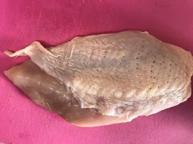 ใส่อกไก่ในถุงซิปล็อค ปิดถุงขณะระบายอากาศ และแช่ที่อุณหภูมิห้องเป็นเวลา 3 ชั่วโมง