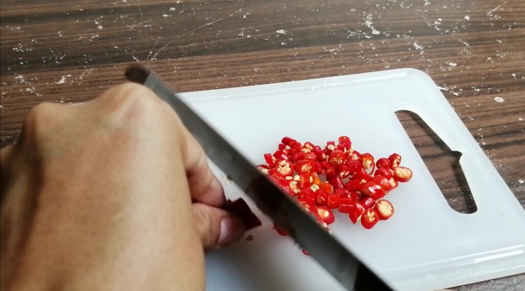 1.หั่uพริก แนะนำเป็นพริกชี้ฟ้าแดงนะคะ หรือพริกแดงจินดา จะทำให้สีสดน่ากินค่ะ
