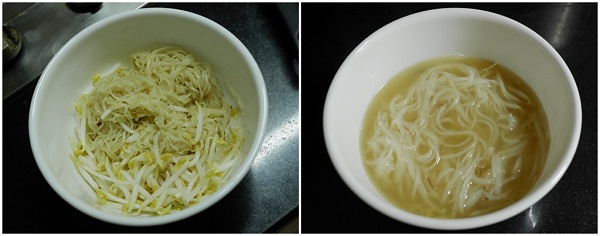 ลวกเส้นก๋วยเตี๋ยวและถั่วงอกให้สุก