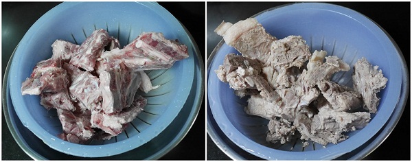 ใส่กระดูกลงในหม้อความดัน ตามด้วยพริกไทย รากผักชี และกระเทียม ใช้เวลาต้ม 1 ชั่วโมง 30 นาที หรือ 90 นาที จะได้น้ำซุปที่ข้นจากไขกระดูก เตรียมรอไว้