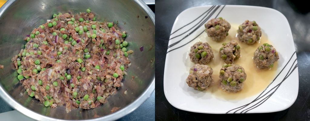 3 หมูสับ+ หอมใหญ่ +ไข่ไก่ +ถั่วลัน