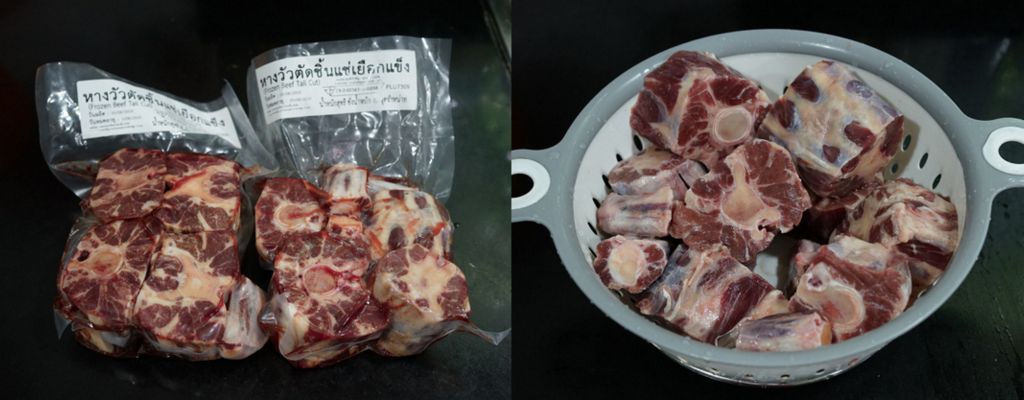นำหางวัวแช่แข็งมาเลาะหนังออกไป