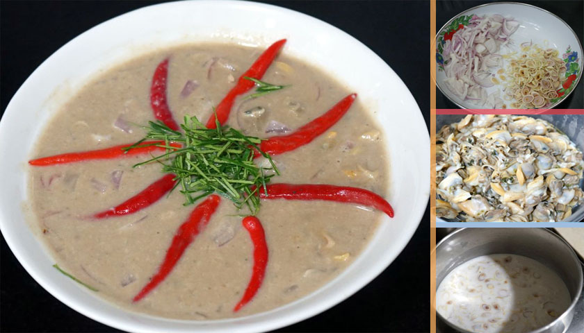 พอเดือด ใส่ หอยลาย ปรุงรส น้ำมะขามเปียก เกลือ น้ำตาลมะพร้าว ใส่หอม พริกขี้หนู ชิมรสตามชอบ