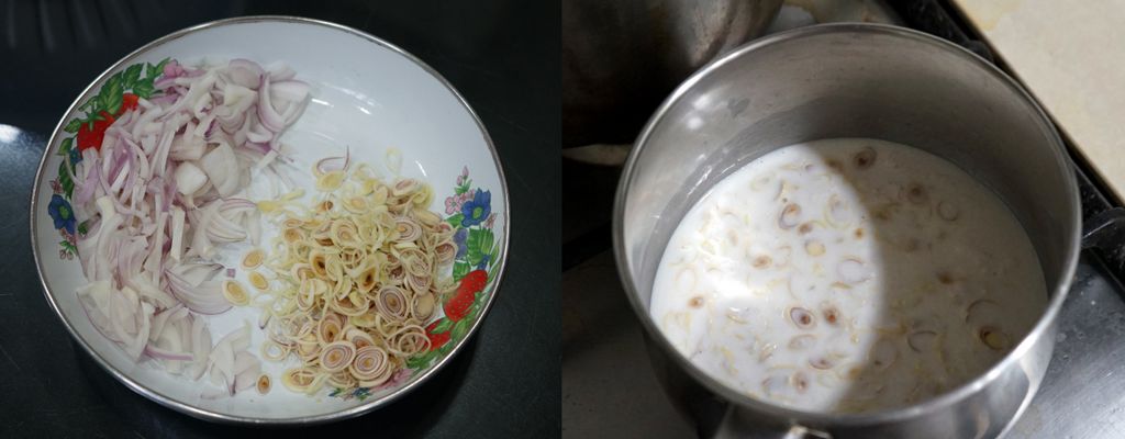ตั้งหม้อนำหอมแดง ข่า ตระใคร้ซอย ไปต้มในหัวกะทิ