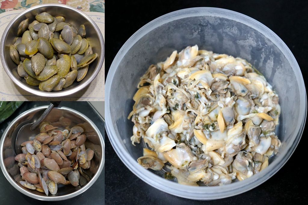 นำหอยลายสดตัวโต มาต้มแกะเอาเนื้อหอยลายมาเตรียมไว้