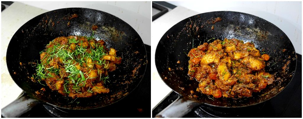 ใส่ใบมะกรูดหั่นฝอยเป็นลำดับสุดท้าย ปรุงรสด้วยน้ำปลาและน้ำตาลปึก ให้มีรสเผ็ดนำ ตามด้วยรสเค็ม และ หวานตามชอบ