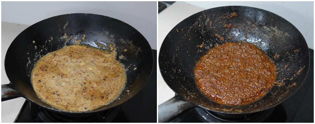 ขั้นตอนการผัดพริกแกงนี้สำคัญมาก ต้องผัดให้หอมน้ำมันแยกออกมา