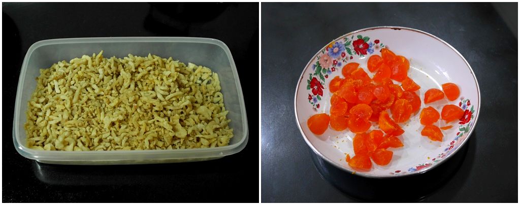 เจียวน้ำมันหมู ไข่แดงเค็มหั่นเป็นชิ้นเล็กไว้