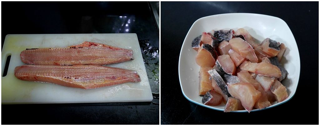 เริ่มเอาเนื้อปลาช่อน เลาะก้างออกให้หมด หั่นเนื้อปลาเป็นชิ้นเล็ก