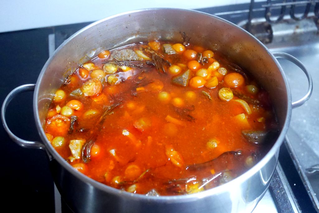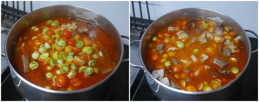 ใส่มะเขือส้ม ตั้งให้เดือด ปรุงรสเค็มด้วยเกลือและน้ำปลา