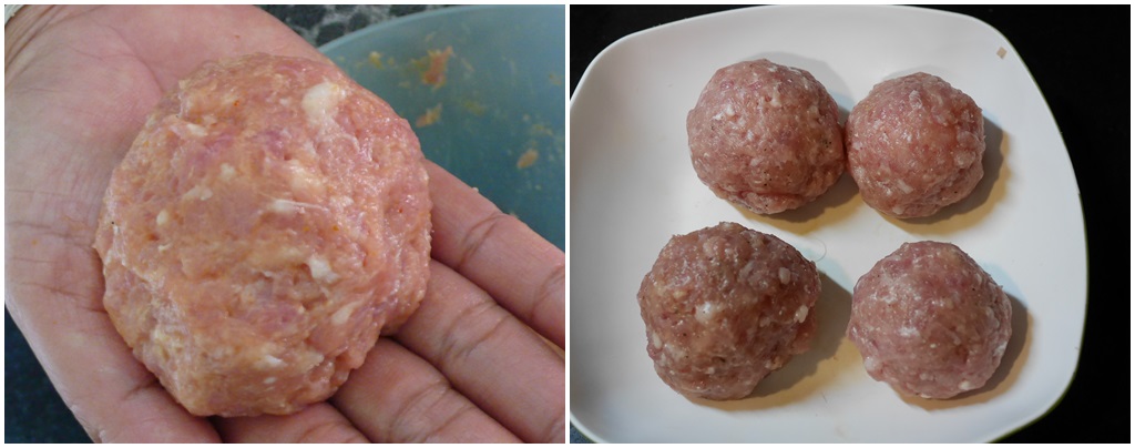 แล้วปั้นหมูสับใส่ไส้ไข่ต้ม
