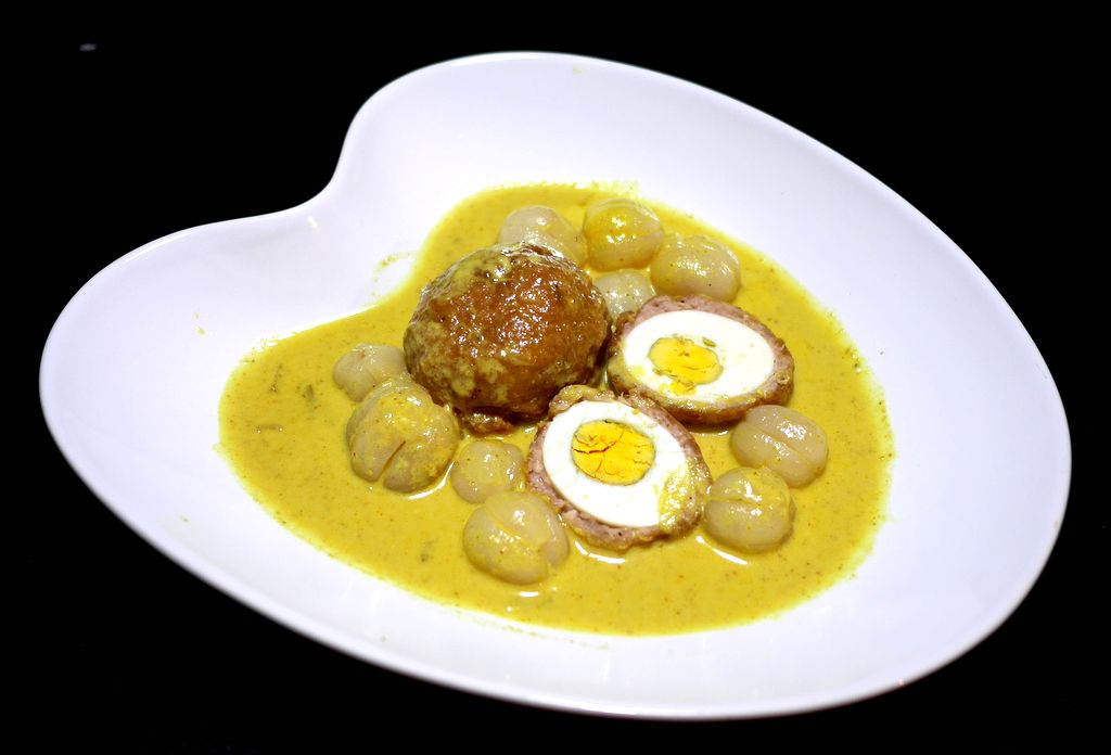 แกงเผ็ดหมูสับไส้ไข่ต้มลองกอง