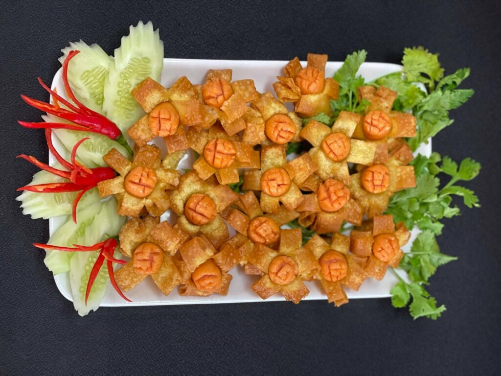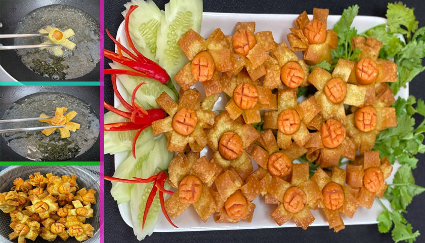 แบ่งปันสูตร เกี้ยวดอกไม้ เมนู อาหารว่างทานกับน้ำจิ้มอร่อยเพลินดี