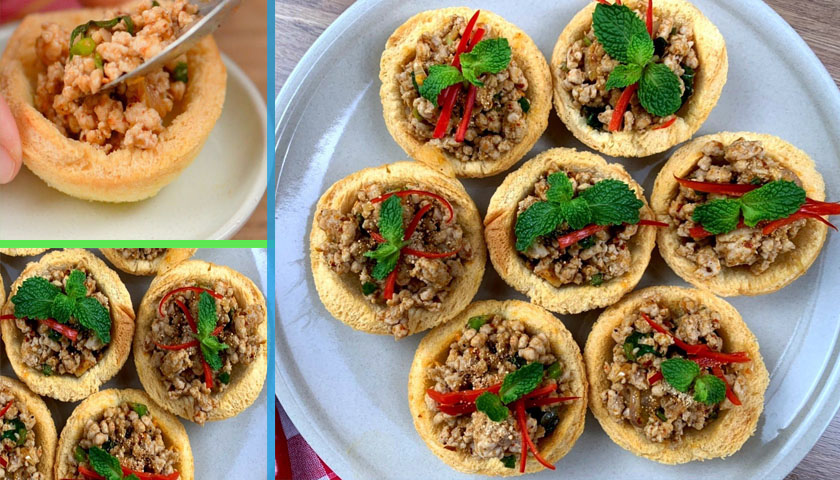 แจกวิธีทำ ลาบปังกระทงกรอบ เมนูอาหารว่าง อร่อยแซ่บกรอบจนคำสุดท้าย