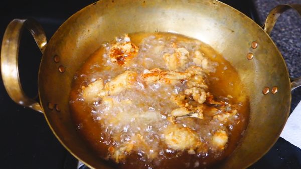 นำไปทอดในกระทะ ใช้ไฟร้อนปานกลาง ทอดให้เหลืองกรอบค่ะ