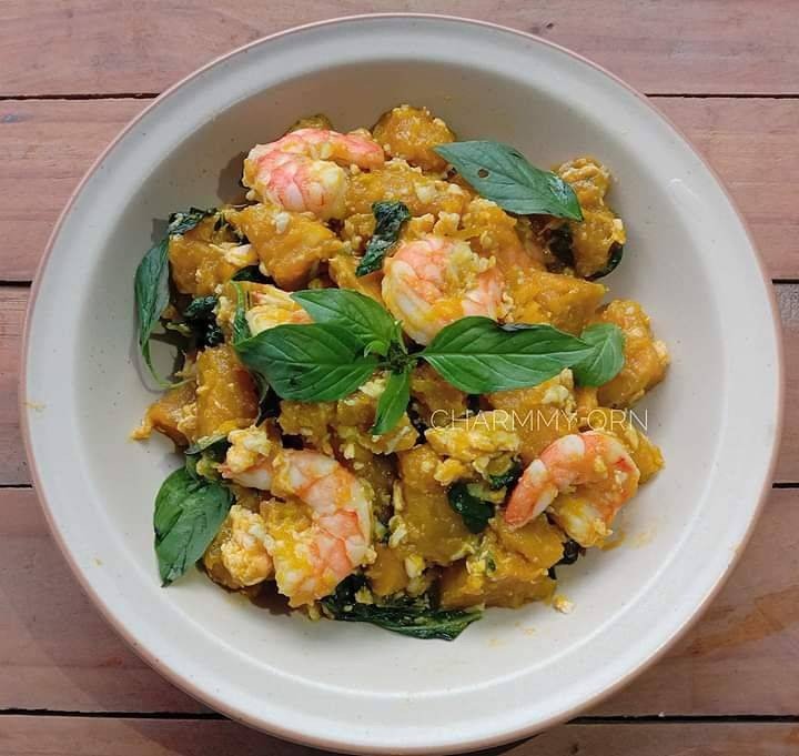 ฟักทองผัดกุ้งใส่ไข่