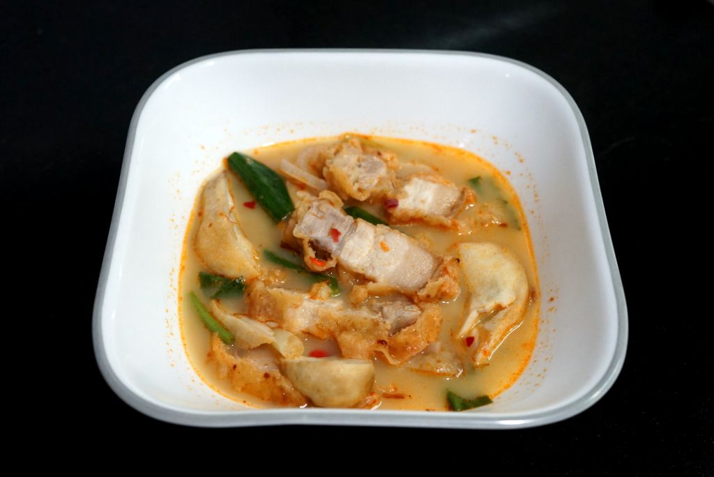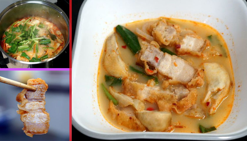 ต้มยำน้ำข้นหมูสามชั้นทอด