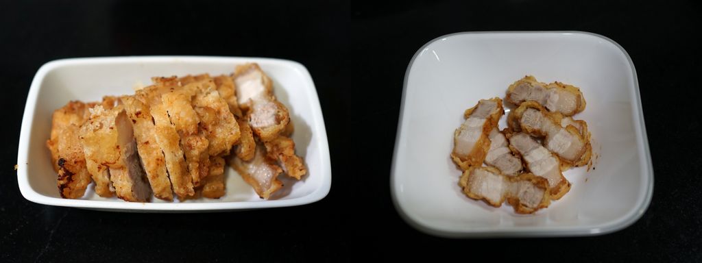 นำหมูทอด หั่นใส่ในถ้วยรอไว้