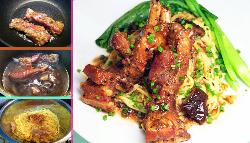 แจกสูตรวิธีทำ บะหมี่แห้งราดซอสกระดูกหมูตุ๋นเห็ดหอม อร่อยเด็ดถูกใจแน่นอน