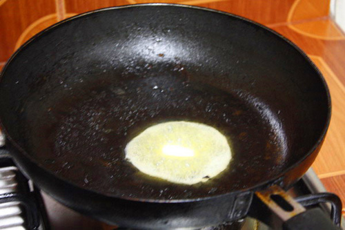 นำกระทะที่ทอดหมู ไม่ต้องล้าง มาใส่เนยลงไป