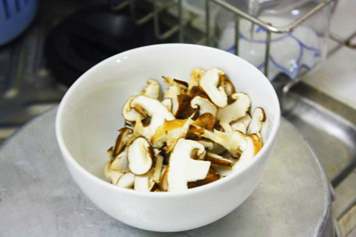 จากนั้นหั่นเห็ดหอม ให้พอดีคำ