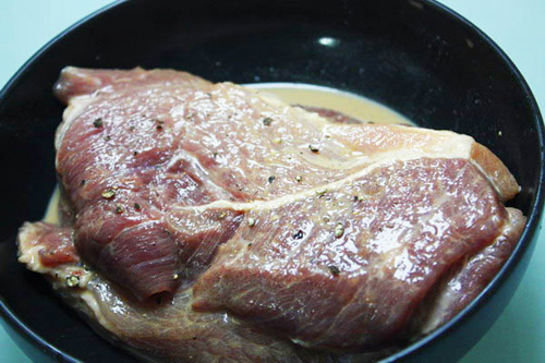 ก่อนที่จะหมักเนื้อหมูนั้น ให้ใช้ค้อนทุบเพื่อให้เนื้อนุ่มและเวลาปรุงรสจะได้เข้าเนื้อ ทอดสุกง่าย โดยทุบหมูให้นุ่ม