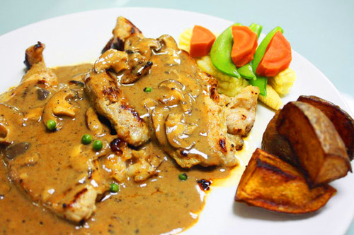 สเต๊กหมูซอสเห็ดหอม+หัวหอม