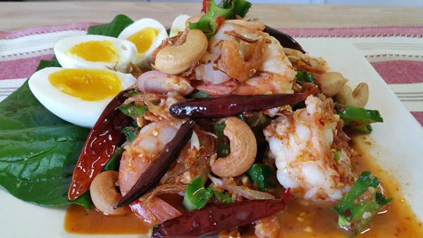 ยำถั่วพูน้ำพริกเผากุ้งสด