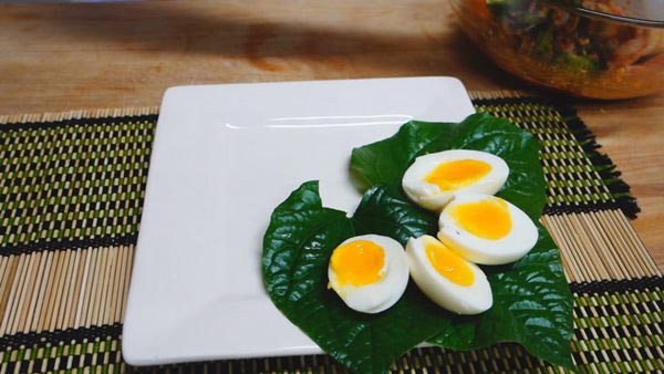 ไข่ต้ม ควรจะใช้ไข่เป็ดนะคะ วิธีต้มไข่ยางมะตูมให้ต้มน้ำจนเดือดก่อน แล้วค่อยนำไข่ใส่ในน้ำเดือด นับเวลาไป 7 นาที รับรองจะได้ไข่ต้มยางมะตูมอร่อย ๆ ค่ะ