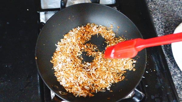 มะพร้าวขูดคั่ว ขาดอันนี้ไม่ได้ เพราะความอร่อยมาจากมะพร้าวคั่วใหม่ ๆจะหอมมาก