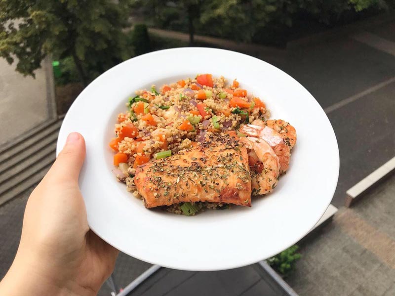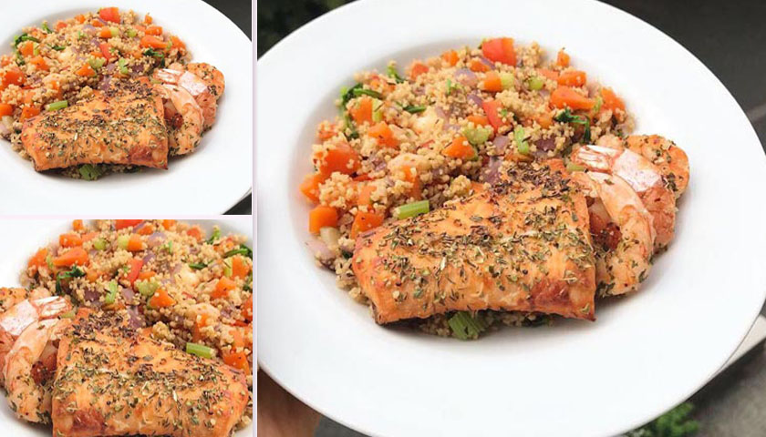 คูสคูสกุ้งแซ่บ แซลมอนและกุ้งย่าง
