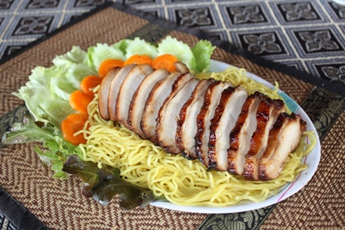 ลวกบะหมี่เสร็จไก่ก็สุก นำมาจัดเสริฟได้เลยค่ะ