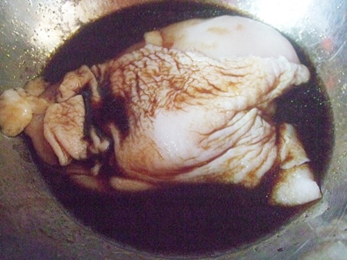 เสร็จแล้วนำเนื้ออกไก่ลงมาหมักค่ะ ทิ้งไว้ 15 นาที น้ำหมักไก่อย่างทิ้งนะคะ เพราะเดี๊ยวเอาไปเคี่ยวเป็นน้ำซอส