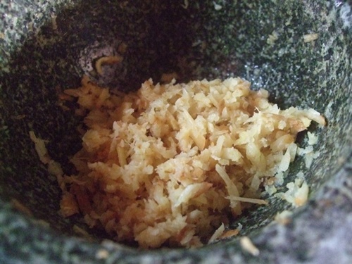 แล้วก็เอามานาบกับกะทะ ให้สุกทั้งสองด้าน