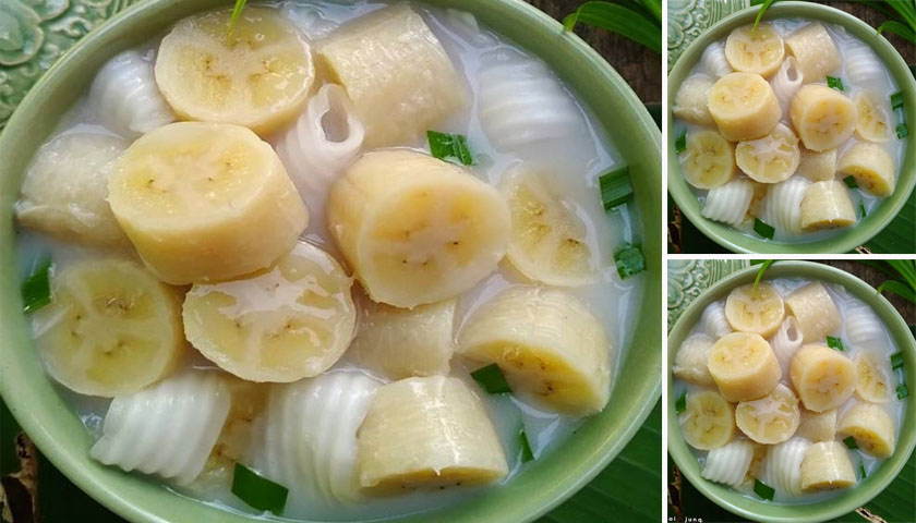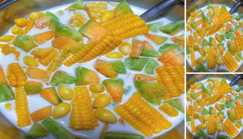 มาตั้งหม้อต้มซี่โครงหมูและตีนไก่ ใส่เกสรดอกงิ้วตามลงไป (เกสรดอกงิ้วจะแห้งและเหนียว แนะนำให้ล้างทำความสะอาดแล้วแช่น้ำค้างคืนไว้ เวลานำมาต้มจะได้เปื่อยง่าย คอยช้อนฟองและตักไขมัน ต้มไปจนกว่าเนื้อสัตว์จะเริ่มเปื่อย เมนูนี้ปกติจะใส่เลือดหมูหรือเลือดไก่ก้อนด้วย หากใครชอบก็สามารถใส่ได้ตามสะดวก