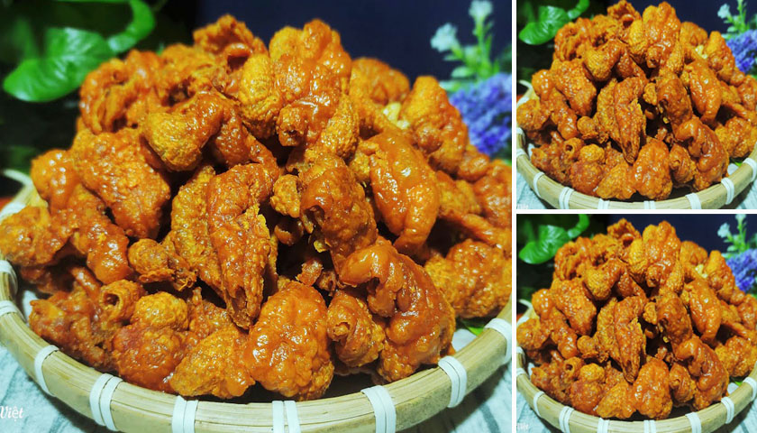 6 ตั้งกระทะ ใส่น้ำมันให้ท่วม ตั้งไฟอ่อน วอมน้ำมันประมาณ 5 นาที จากนั้นค่อยๆ ใส่หนังไก่ลงไปทีละชิ้นจนหมด