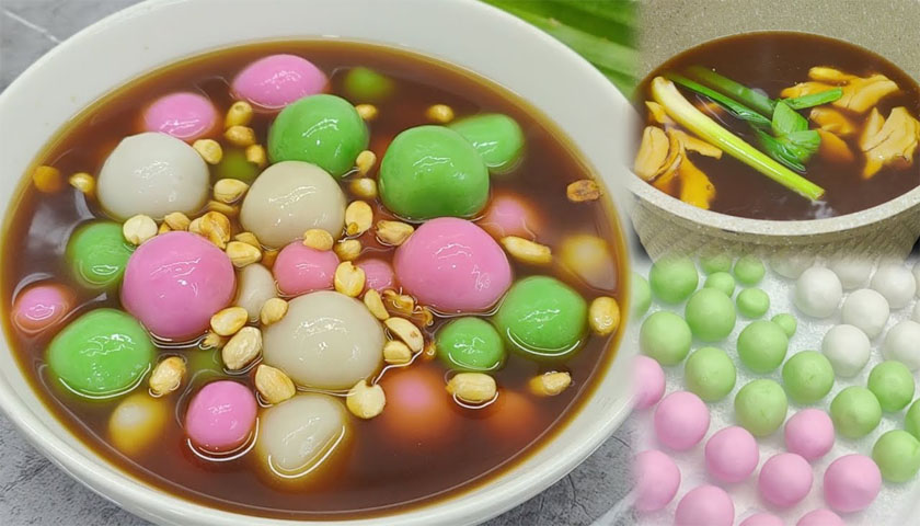 1. ผสมแป้งข้าวเหนียวกับน้ำ ค่อย ๆ ใส่น้ำแล้วนวดจนเป็นเนื้อแป้งที่นุ่มและไม่ติดมือ