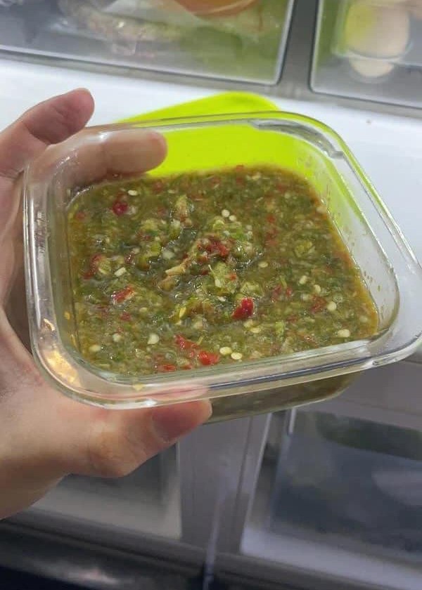ใช้พริกขี้หนูสวนสีเขียวแดงผสมกัน จะทำให้น้ำจิ้มสีสวย
