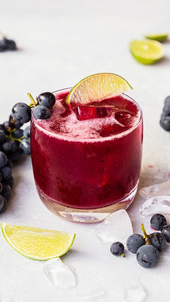 ผ่าครึ่ง ผลองุ่น โดยแกะเอาเมล็ดองุ่นออก จากนั้นใส่องุ่นในเครื่องปั่น เติม น้ำเชื่อม น้ำเปล่า และ เกลือ ปั่นรวมกันจากนั้นกรองเอากากออก ให้เหลือแต่น้ำสีม่วงๆ ชิมรสชาติให้พอดี จากนั้นนำไปแช่เย็น เวลารับประทานให้เสริฟใส่แก้วเติมน้ำแข็ง เพื่อรักษาความเย็นของน้ำผลไม้ให้อร่อยสดชื่นเลยคะ