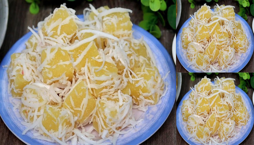 – รอให้ขนมเย็นตัวลง ตัดเป็นชิ้นสี่เหลี่ยม โรยมะพร้าวขูด พร้อมเสิร์ฟ