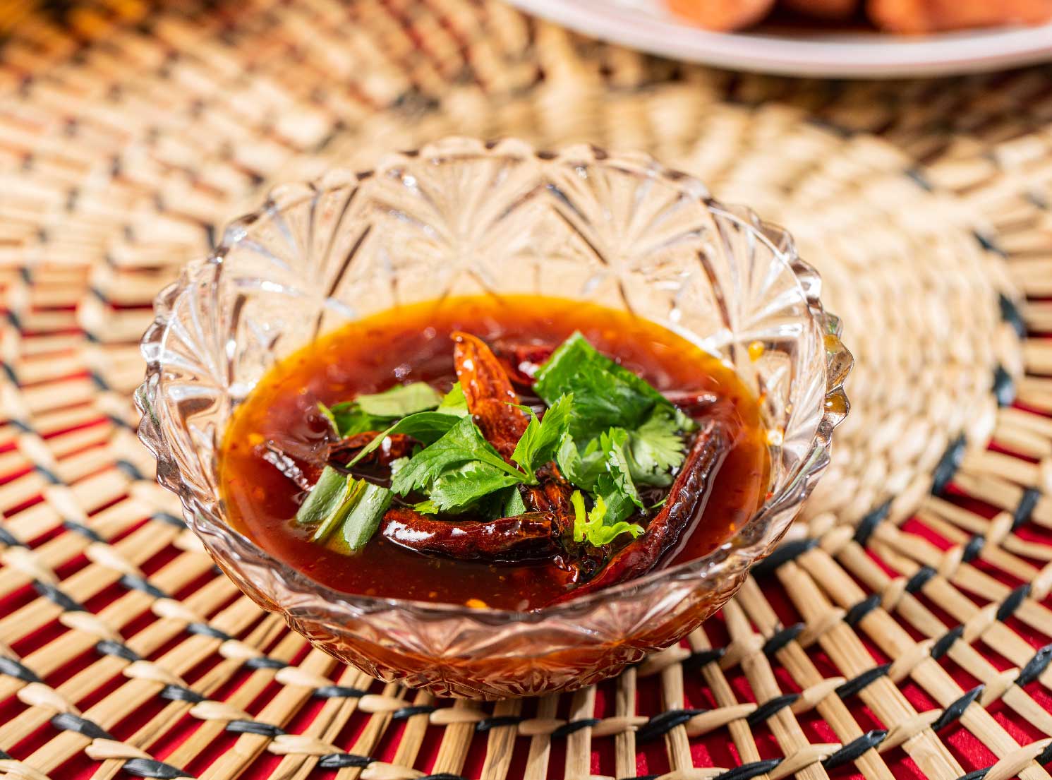 พริกแห้งทอด ผักชีหรือผักชีฝรั่งหั่นท่อนสำหรับโรย